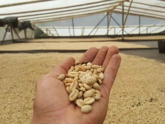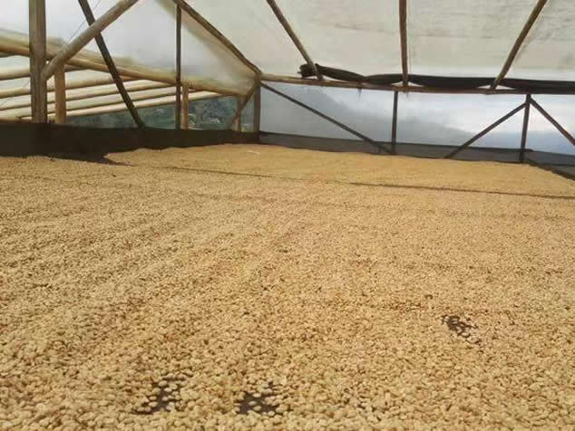 7.進行陽光乾燥,在此階段中,陽光照射時間為 8 小時,接著靜置 12 小時,干燥時間約為 20-25 天,直到咖啡的水分含量達到11%的時候。(第三階段發酵)